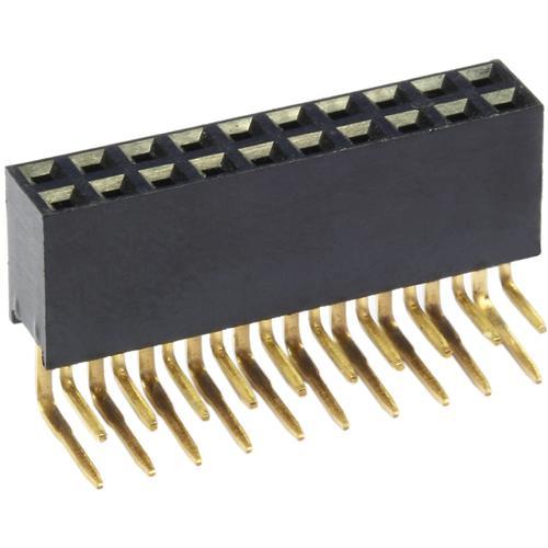 barette femelle pour circuit imprimé au pas de 2.54mm hauteur : 8.5mm intensité : 1.5a tension : 500 volts nombre de contact : 2 X 10 lot de 5 piéces