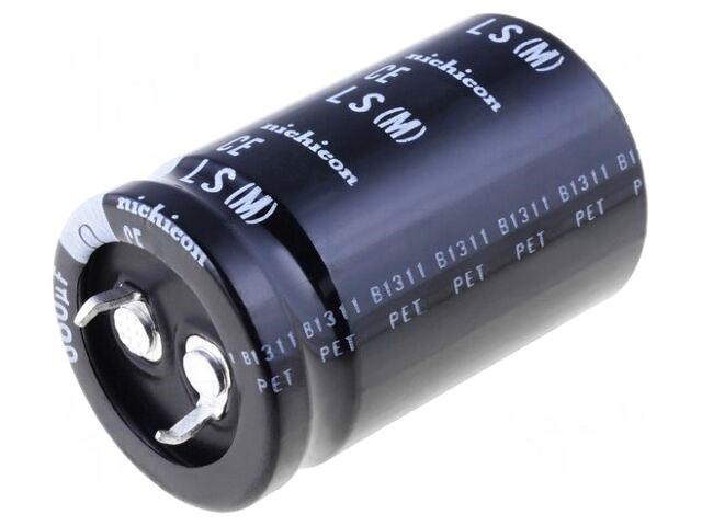 Fabricant : NICHICON Type de condensateur : électrolytique Montage : SNAP-IN Capacité : 680µF Tension de travail : 200V DC Encombrements du corps : Ø30x30mm Tolérance : ±20% Durée de vie :...