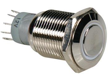 Interrupteur antivandalisme. Interrupteur antivandalisme en métal 1 pôle (3 contacts, 1 x Off, 1 x On). LED 24 V. Puissance de coupure 3 A/250 V AC. Diamètre de per‡age 16 x 28 mm (sans cosses). Cosses à souder.
